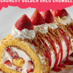 Keywords: strawberry shortcake cheesecake, strawberry roll dessert, no-bake cheesecake filling, golden Oreo crumble, strawberry dessert roll