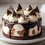The Hot Fudge Sundae Brownie Cheesecake is a decadent dessert that combines the rich flavors of fudgy brownies, creamy cheesecake, and luscious hot fudge sauce. Topped with whipped cream and cherries, it’s a show-stopping treat perfect for any special occasion or whenever you want to indulge your sweet tooth.