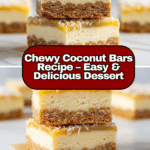 These irresistible chewy coconut bars blend rich buttery sweetness with the tropical flavor of shredded coconut, creating a chewy, golden treat perfect for any occasion.