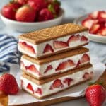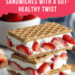 Keywords: Japanese cheesecake, ice cream sandwiches, no-bake dessert, Lifeway Farmer Cheese, almond butter, maple syrup, Biscoff cookies, cinnamon cookies, strawberries, gut-healthy dessert