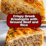 Keywords: kreatopita, Greek meat pie, ground beef pie, phyllo pie, savory pie, meat and rice pie, Greek cuisine, baked meat pie, phyllo pastry