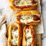 If you don’t have sub rolls, hoagie buns, baguettes, or even sturdy sandwich bread can work well for holding the meatballs and sauce.