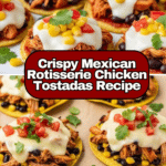 These Mexican Rotisserie Chicken Tostadas are a quick and flavorful way to enjoy a classic dish. Crispy tortillas topped with a savory mixture of shredded chicken, beans, and corn, then melted cheese and fresh garnishes make for a satisfying meal perfect for any day of the week.