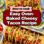 This Oven-Baked Cheesy Tacos recipe transforms classic tacos into a deliciously melty and crispy meal. Ground beef seasoned with savory spices, combined with melted cheddar cheese inside warm taco shells, then baked to perfection. Topped with fresh lettuce, tomatoes, onions, and cilantro for a flavorful crunch. Perfect for an easy weeknight dinner or a crowd-pleasing appetizer.