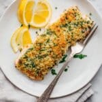 This Parmesan Crusted Salmon recipe features tender, flaky salmon fillets coated with a crispy, flavorful parmesan and panko breadcrumb crust. Enhanced with garlic, fresh parsley, and a buttery finish, this dish is pan-seared to golden perfection, combining a delicious crunch with the rich taste of salmon. It’s a quick and elegant meal that’s perfect for any night of the week.