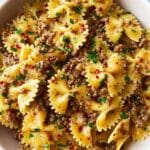 This Parmesan Garlic Beef Bowtie Pasta is a comforting and flavorful meal that comes together quickly for a satisfying weeknight dinner. With tender ground beef, perfectly cooked bowtie pasta, and a creamy Parmesan sauce, it’s a dish the whole family will love.