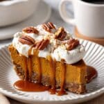 Store the pumpkin cheese bake covered in the refrigerator for up to 4 days. Reheat individual portions in the microwave for 20-30 seconds or enjoy cold. It also freezes well – wrap tightly and freeze for up to 2 months. Thaw overnight in the fridge before reheating.