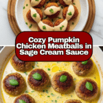Keywords: pumpkin chicken meatballs, sage cream sauce, fall recipe, creamy meatballs, easy dinner