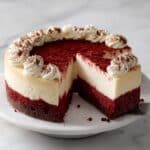 This Red Velvet Cheesecake Brownies recipe combines the rich, fudgy taste of dark chocolate brownies with a creamy, tangy cheesecake swirl, all beautifully tinted with vibrant red food coloring to create an eye-catching dessert perfect for any occasion.
