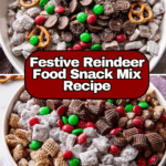 Keywords: holiday snack, Christmas recipe, Reindeer Food snack mix, peanut butter and chocolate snack, festive treat, holiday party food, easy no-cook recipe