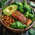 This delightful Salmon with Olive Oil-Braised Zucchini and Chickpeas combines tender, flaky salmon fillets with a vibrant, healthy vegetable and legume medley. The salmon is gently cooked atop zucchini and chickpeas that are braised in fragrant olive oil with garlic, lemon zest, and a hint of crushed red pepper, resulting in a flavorful and wholesome one-pan meal perfect for any occasion.