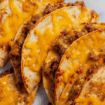 Keywords: Sheet Pan Tacos, easy tacos, ground beef tacos, weeknight dinner, Mexican recipe, baked tacos, taco recipe