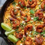 Shrimp and Creamed Corn is a deliciously creamy and flavorful dish combining tender shrimp seasoned with chili powder and smoked paprika, sautéed with garlic and onions, and served atop a rich, buttery creamed corn base enhanced with feta cheese and fresh lime juice. Perfect for a comforting weeknight dinner or an impressive meal for guests, this recipe balances spicy, tangy, and savory flavors with a fresh cilantro garnish.