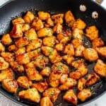 - Combine Chicken with Sauce: Return the cooked chicken bites to the skillet and toss them in the thickened honey garlic sauce until they are fully coated and heated through, about 1-2 minutes.