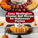 This Skellington Cheese Ball is a fun and festive appetizer perfect for Halloween parties or any spooky gathering. It combines creamy cheddar and cream cheese with flavorful seasonings, shaped into a ball and decorated with black olives to create a creepy, edible face. It’s both easy to make and sure to impress your guests.