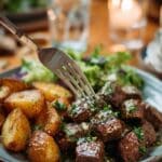 - Serve: Transfer beef and potatoes to a serving platter. Spoon extra sauce over the top, sprinkle with additional fresh parsley, and serve warm for a flavorful and comforting meal.