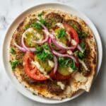 Smash Falafel Pita is a delicious and fresh twist on the classic falafel sandwich. This recipe uses soaked chickpeas blended with herbs and spices, then cooked directly on pita bread for a crispy, flavorful meal that comes together quickly and easily.