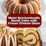 Keywords: Snickerdoodle Bundt Cake, cinnamon swirl cake, cream cheese glaze, vanilla cake, Bundt cake recipe, cinnamon sugar cake