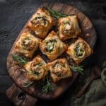 This spinach filo spiral pie is a delicious and visually stunning dish perfect for any occasion. Crispy layers of filo pastry encase a flavorful filling of spinach, onion, and feta, making it a satisfying vegetarian treat.