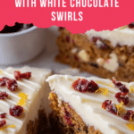 - Decorate: Sprinkle the chopped dried cranberries over the frosting surface. Drizzle melted white chocolate in a decorative crosshatch or zigzag pattern. Optionally, add extra orange zest on top for a vibrant touch.