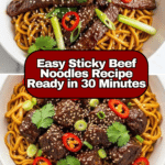 Keywords: Sticky Beef Noodles, stir fry beef noodles, Asian beef recipe, quick beef dinner, noodle stir fry