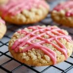 Delightfully sweet and crunchy Strawberry Crunch Cookies topped with a buttery crumble of freeze-dried strawberries and vanilla wafers, finished with a delicate pink glaze drizzle. Perfectly soft and chewy inside with a crispy, fruity topping, these cookies are an irresistible treat for strawberry lovers.