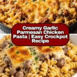 This Crockpot Garlic Parmesan Chicken Pasta is an effortless, creamy, and comforting meal perfect for busy days. Tender chicken cooks slowly with rich cheeses and garlic, merging beautifully with your favorite pasta for a simple yet delicious dinner.