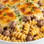 This comforting and creamy Crockpot Garlic Parmesan Chicken Pasta is a simple one-pot meal perfect for busy days. Tender chicken breasts are slow-cooked with garlic, Parmesan, cream cheese, and chicken broth to create a rich sauce. Combined with pasta and a splash of cream, this hearty dish is both flavorful and easy to make.