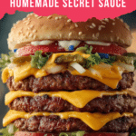 The Big Double Cheeseburger with Secret Sauce is a hearty, flavorful classic made special with a tangy, homemade sauce. This recipe layers two juicy steak patties with cheese, fresh lettuce, gherkins, and a unique secret sauce that takes the burger experience to the next level.