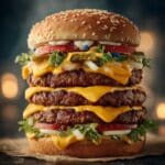 The Big Double Cheeseburger with Secret Sauce is a hearty, flavorful classic made special with a tangy, homemade sauce. This recipe layers two juicy steak patties with cheese, fresh lettuce, gherkins, and a unique secret sauce that takes the burger experience to the next level.