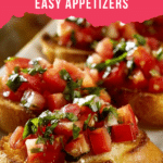 Keywords: Tomato bruschetta, basil bruschetta, Italian appetizer, toasted bread with tomato, garlic bread, easy bruschetta recipe