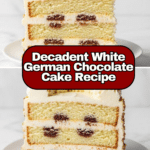 This White German Chocolate Cake is a delightful two-layer dessert featuring a moist, tender crumb infused with melted white chocolate and layered with a creamy white chocolate frosting. Enhanced with shredded coconut and chopped pecans, it offers a perfect balance of flavors and textures that make it a crowd-pleaser for any occasion.