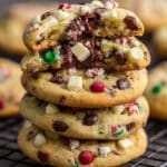 - Add Chocolate and Peppermint: Fold in semi-sweet chocolate chips, white chocolate chips, and crushed peppermint candies evenly throughout the dough.