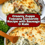 Keywords: Zuppa Toscana Casserole, Italian casserole, creamy potato casserole, bacon sausage casserole, kale casserole